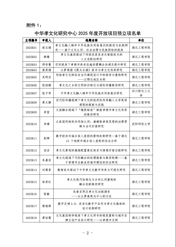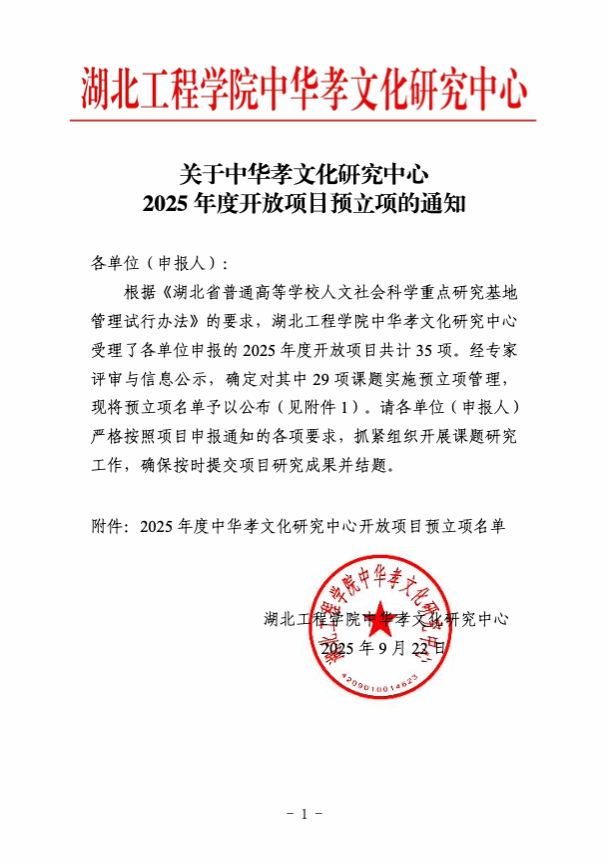 关于中华孝文化研究中心2025年度开放项目预立项的通知